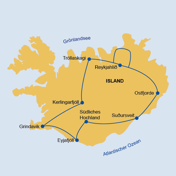 Die Fahrstrecken legen wir im Allrad-Minibus zurück, der von der Reiseleitung gefahren wird. Bei einer Island-Rundreise sind längere Fahrstrecken unumgänglich. Entsprechend dem Konzept dieser Reise haben wir diese an bestimmten Tagen konzentriert, um an anderen Tagen keine oder kürzere Anfahrten zu haben. Längere Wanderungen und Erkundungen finden jeweils an den Tagen ohne Unterkunftswechsel statt. Natürlich werden längere Fahrten je nach Strecke von Stopps mit Frischluftpausen, Besichtigungen oder kurzen Wanderungen unterbrochen.