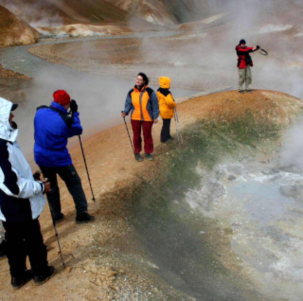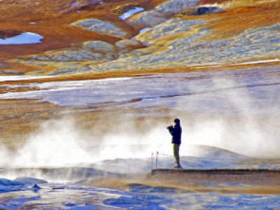 Eine spannende Wanderung führt uns ins hochgelegene Geothermalgebiet Kerlingarfjöll. Hier erwartet Dich eine wahre Hexenküche. Überall dampft und brodelt es zwischen bunten Sinter- und Schwefelablagerungen. Schneegefüllte Senken und leuchtend grüne Moose sorgen, neben dem ohnehin bunten Rhyolith-Gestein, für weitere Farbkontraste. Am Nachmittag führt unser Weg gen Norden. Auf der Tröllaskagi-Halbinsel erwartet uns frisches Grün.