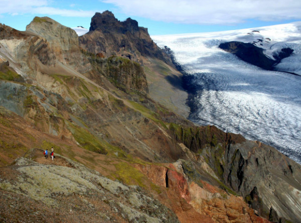 Unser erstes Ziel heißt heute Skaftafell. Der dreiseitig vom Gletscher umgebene Bergrücken ist das blühende Zentrum des Vatnajökull-Nationalparks. Wanderungen verschiedener Schwierigkeit und Länge sind möglich. Anschließend durchqueren wir die Weiten der Sanderebene Skeiðarársandur. Der Weg ins südliche Hochland führt Dich durch die „Feuerspalte“ Eldgjá, eine der größten Vulkanspalten der Erde. Gegen Abend erreichen wir die weite, grüne Ebene um Landmannahellir