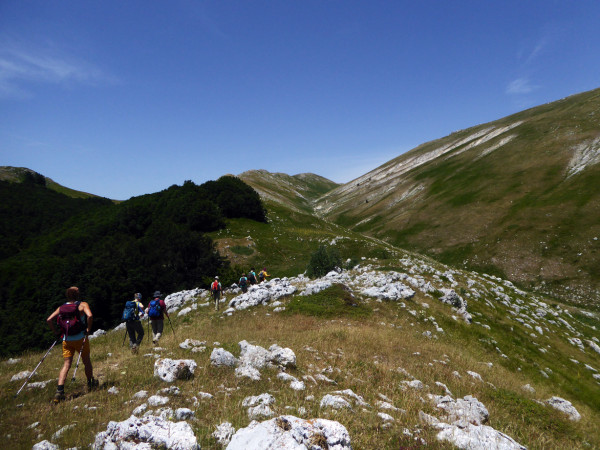 Unsere erste großartige Panoramatour erwartet uns: Nach einem kurzen Transfer zum Passo die San Leonardo beginnt die ca. 13 km lange Wanderung zum Monte Mileto im Morrone Gebirge. In dieser Gegend wandelte um 1270 Pietro da Morrone, der spätere Papst Coelestin V (ab 1294). Von der Hirtenunterkunft Stazzo di Capoposto geht es über Bergwiesen und durch Buchenwälder gemütlich bergan zu einer Kammhöhe mit großartigen Ausblicken. Schon bald haben wir den Gipfel auf 1920m Höhe erreicht. Hier oben befindet sich ein ausgedehntes Weidegebiet, auf dem uns Schafe begegnen können. Und mit Glück können wir auch halb wild lebende Pferde entdecken. (Gehzeit ca. 4-5 Std., einfach bis mittel, ca. 550 Höhenmeter im Auf- und Abstieg). Den restlichen Tag können wir die Seele baumeln lassen oder ihn mit einem Spaziergang durch unser Dorf versüßen. Am Abend erwartet uns wieder die vorzügliche Küche in unserem Hotel. (F/A).