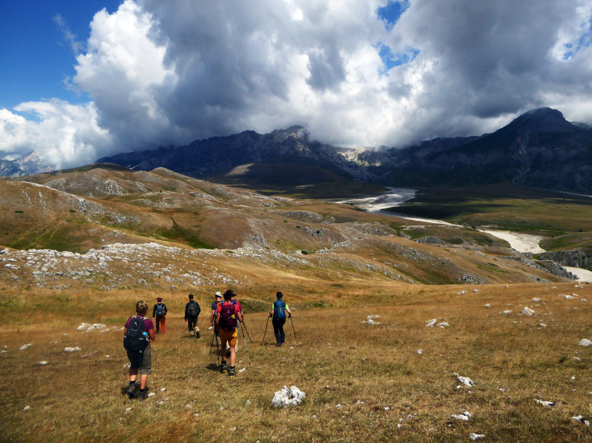 Heute erwartet Dich eine Wanderung auf dem Campo Imperatore, die je nach Lust und Laune unserer heutigen Verfassung angepasst werden kann. Nach kurzer Fahrzeit befindest Du Dich in diesem beeindruckenden Hochtal, das von hohen Gipfeln umsäumt wird. Diese über 25 Kilometer lange, mongolisch anmutende Hochebene ist nach Kaiser Friedrich II, der im Mittelalter Herrscher über dieses Gebiet war, benannt und liegt in einer Höhe zwischen 1600 und 2200 Metern.