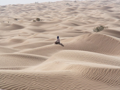 Bald ist der Talausgang des Oued Mhasseur erreicht. Du verlässt die gebirgige Landschaft des Djebel Bani und trittst hinaus in die weite Wüstenlandschaft. Fernab der Hektik genießt Du die Stille und Einsamkeit der grenzenlosen Sahara. Der Alltag rückt in weite Ferne. Fasettenreich liegt die Wüste vor Dir. Vorerst über ein großes Reg - so heißt die steinige Ebene - näherst Du Dich den Sanddünen und erreichst schließlich Erg Chégaga, die größten und höchsten Dünen dieser Region. Das Camp wird inmitten der Dünen aufgestellt, die sich wie Wellen aneinanderreihen. Du erklimmst einen der Dünenkämme und genießt die untergehende Sonne und die faszinierende Landschaft.