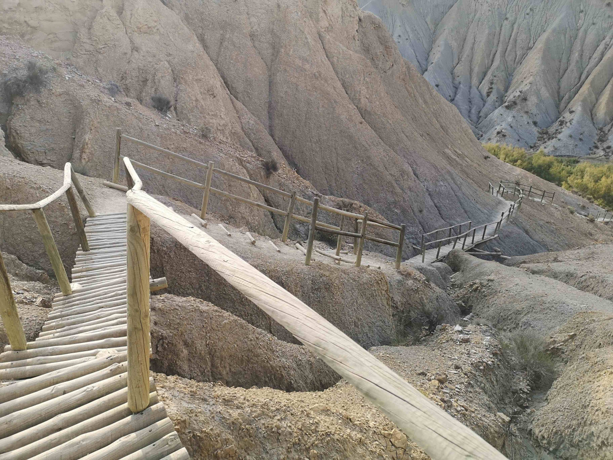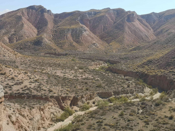 Nach dem Frühstück machen wir uns auf den etwas längeren, aber besonders lohnenswerten Weg, um die „Badlands von Barranco Hondo“ kennenzulernen. Wir erwandern die spektakuläre Hügelkette, bestehend aus äußerst reizvollem „Ödland“, dessen Wüstencharakter eher typisch für den Wilden Westen zu sein scheint und die uns die geologische Geschichte der Gegend mit verblüffender Einfachheit erklärlich macht. Außerdem ist der älteste bisher entdeckte europäische Hominide beheimatet, der Orce-Mensch, dessen Überreste auf anderthalb Millionen Jahre datiert werden und der am heute noch existierenden „endorheischen“ – also abflusslosen - See lebte. Alles an diesem Ort scheint irgendwie elementar, streng und mächtig. Die Anfahrt in diese extreme Zone ist zugegebenermaßen etwas länger, aber dadurch können wir davon ausgehen, dass der Besuch dieses grandiosen Naturphänomens nur wenigen Reisenden vorbehalten ist.